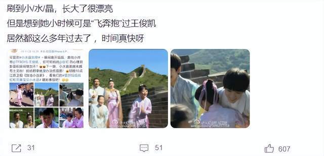 2007年,翁虹和刘冠廷结婚,同年10月生下女儿,取名为“小水晶”,在录制综艺《加油小当家》的时候,小水晶参与录制,她跑着去拥抱王俊凯,成功让屏幕前的观众羡慕不已。