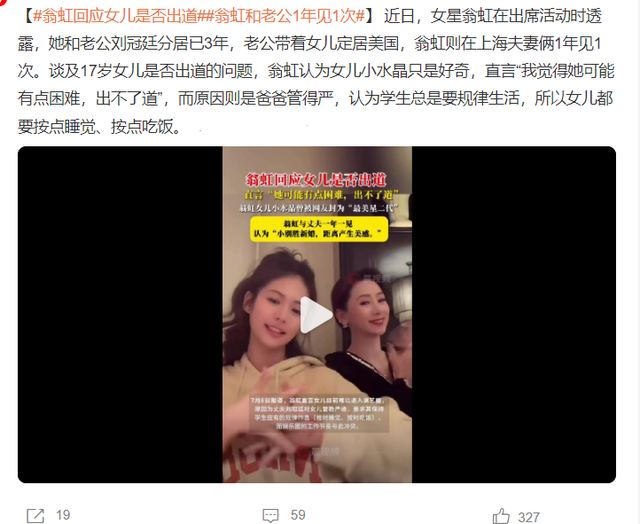 看到翁虹的回复,网友们立即表示:不出道真的可以了,她太适合走爱豆路线,非常有路人缘,就像小酒窝一样。